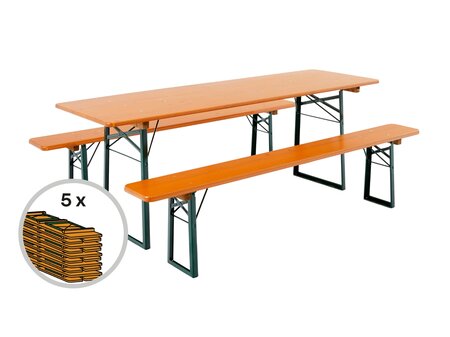 Mesa y bancos plegables – color pino